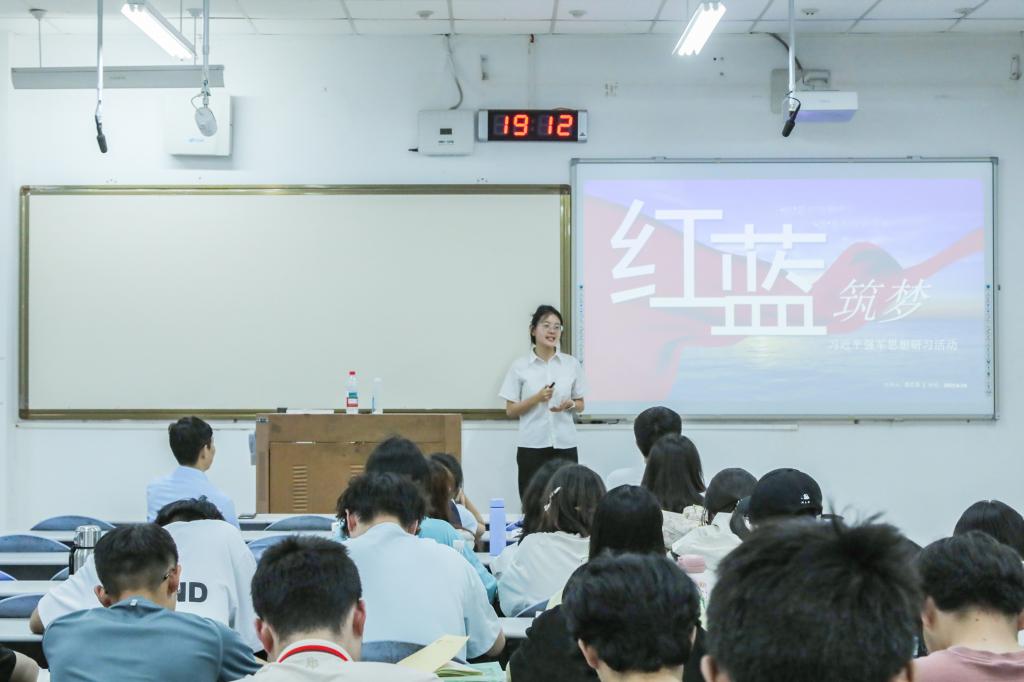 6月16日至18日,校团委、马克思主义学院联合开展大学生宣讲员进课堂活动,来自能源学院、安全学院、外国语学院、马克思主义学院的6名学生宣讲员带着“‘红蓝筑梦’提升行动之——习近平强军思想实践研学活动”成果,以“朋辈领学”的创新形式,在《习近平新时代中国特色社会主义思想概论》课堂上掀起青春思潮。