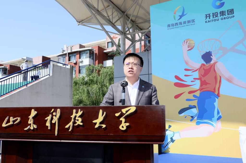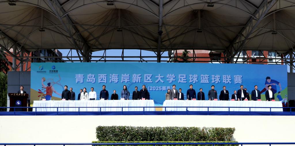 5月18日,青岛西海岸新区大学足球篮球联赛(2025赛季)开幕式在我校举办。青岛西海岸新区工委副书记、区长王清源,共青团青岛市委书记周正,青岛市体育局二级巡视员矫曙光,青岛市足球协会主席杨鹏鸣等出席活动。校党委书记王君松出席并致辞,副校长诸葛福民参加活动。